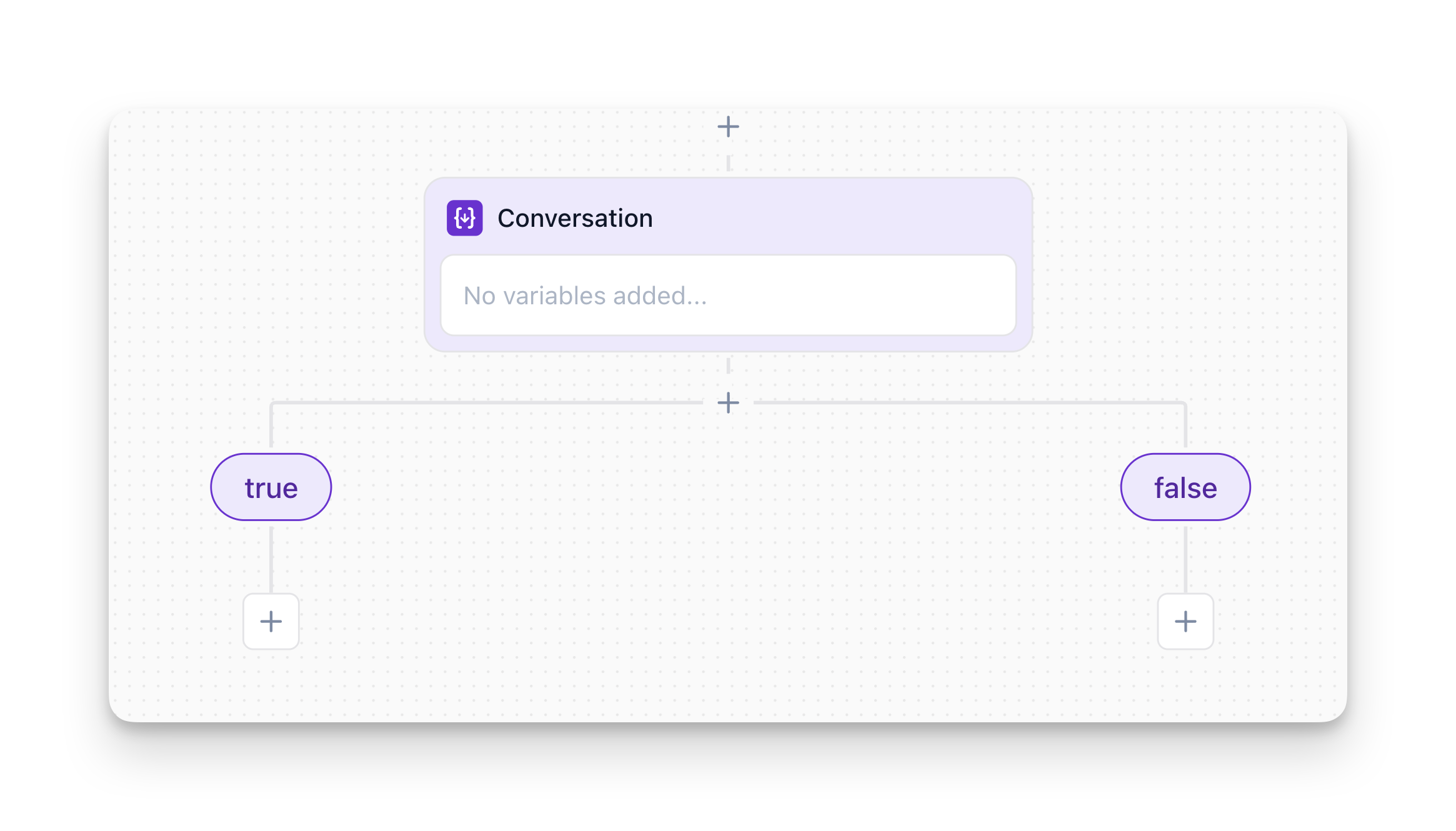 {variable_name}and action results with<action.field> - Be precise: Write the exact logical test (e.g., “If the user said Yes” or “When {order_total} is greater than 100”)