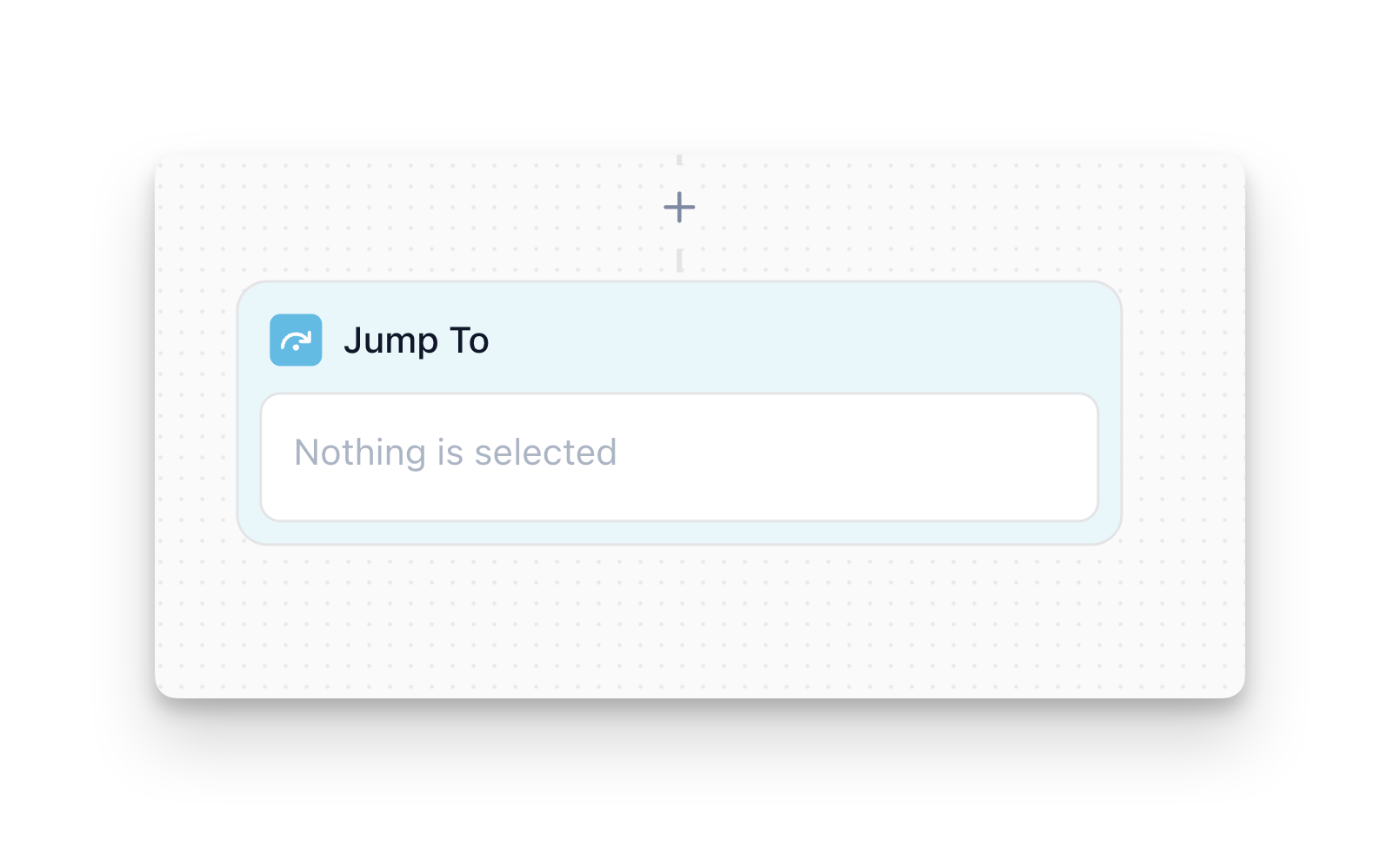 The Jump To Node redirects your flow directly to any other Conversation or Branch node in your flow—skipping everything in between. Think of it like a “goto” statement: as soon as the Jump To Node executes, the flow immediately moves to the specified target node.