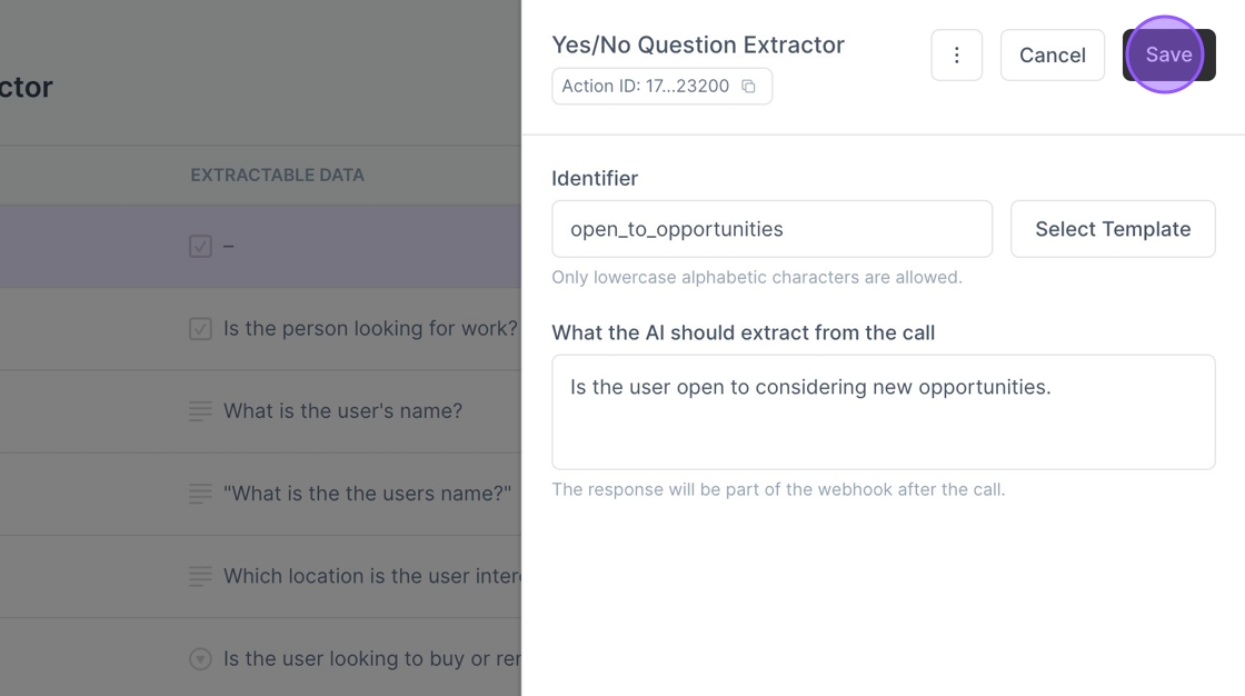 Done! Now you can go through and repeat this process for each piece of information you want to extract from the Assistant Call.