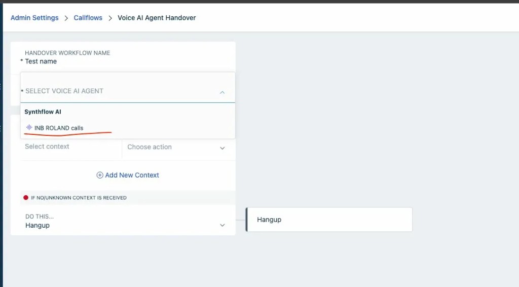 - If No/Unknown Context Is Received: Set a fallback action (for example, Hangup, or transfer to a queue).