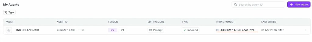 Every new agent you create in Synthflow automatically gets a SIP URI assigned to it. You do not need to import any phone numbers into Synthflow — the connection is handled entirely through SIP.