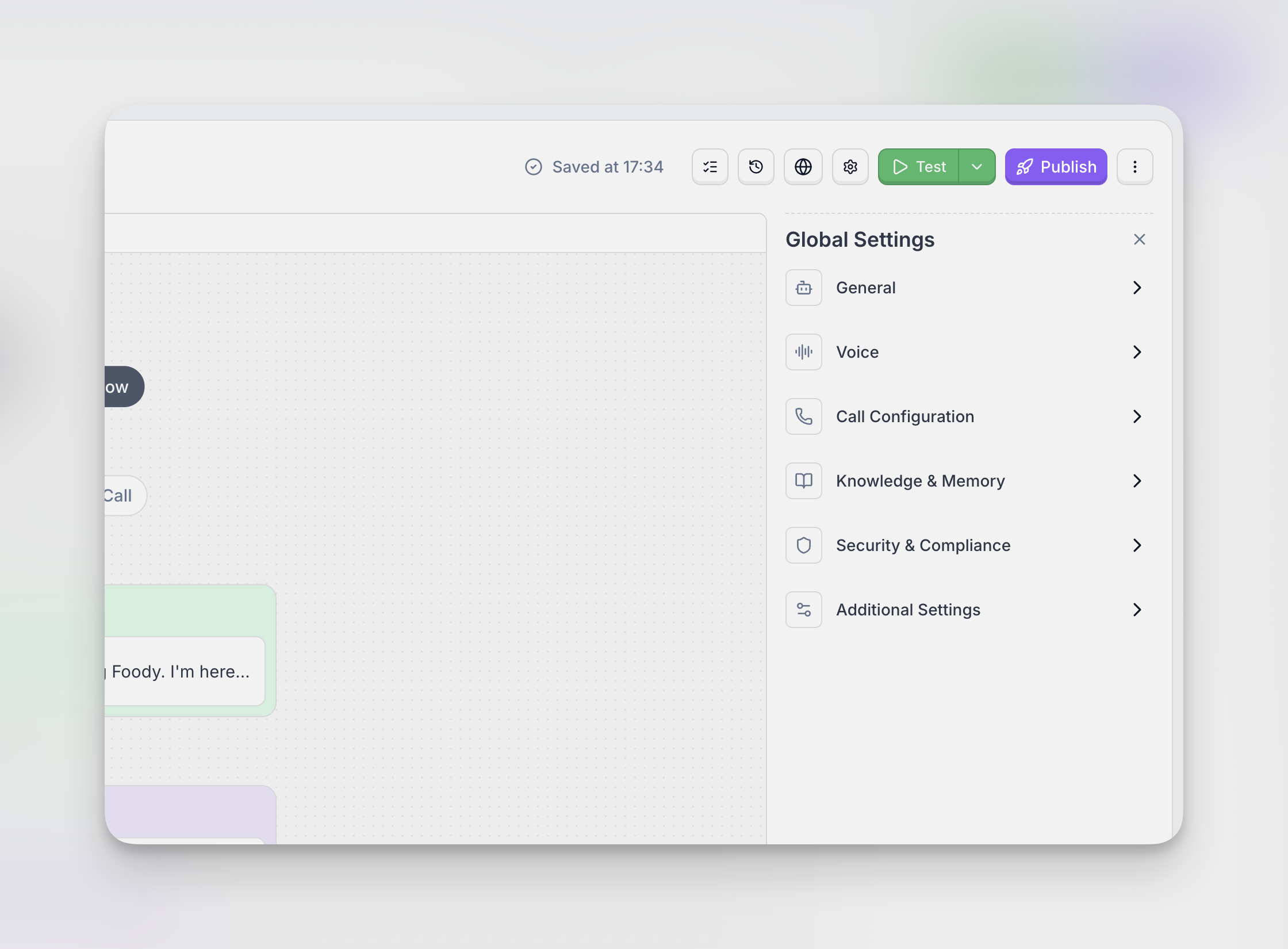 Important: Publishing immediately replaces the existing production version of your Flow Designer agent. All active calls will continue using the previous version, but new calls will use the newly published version.