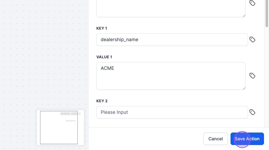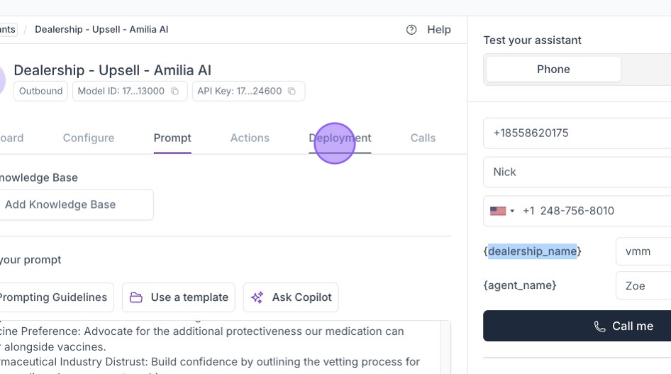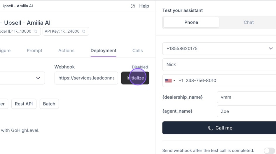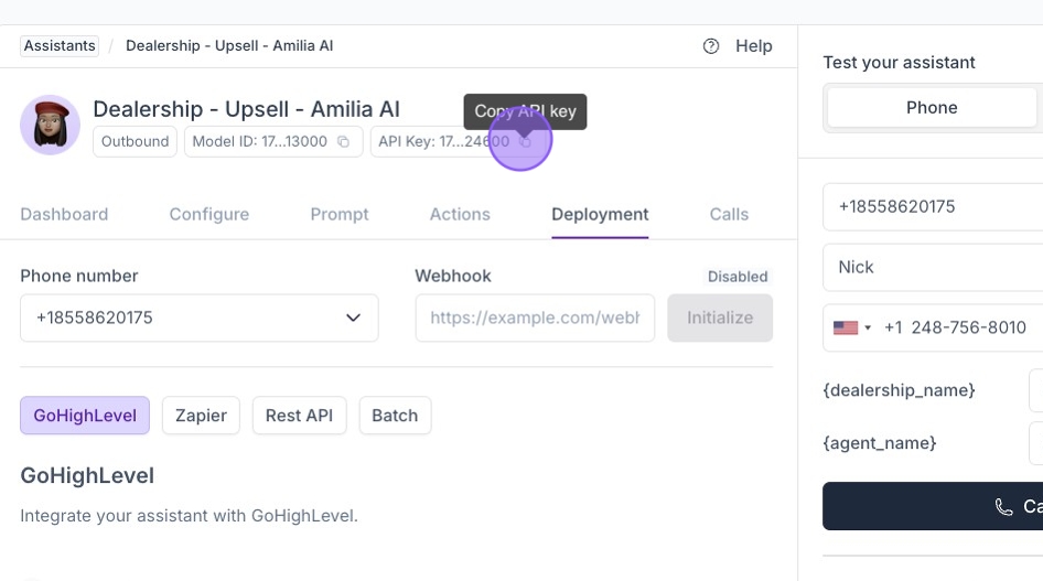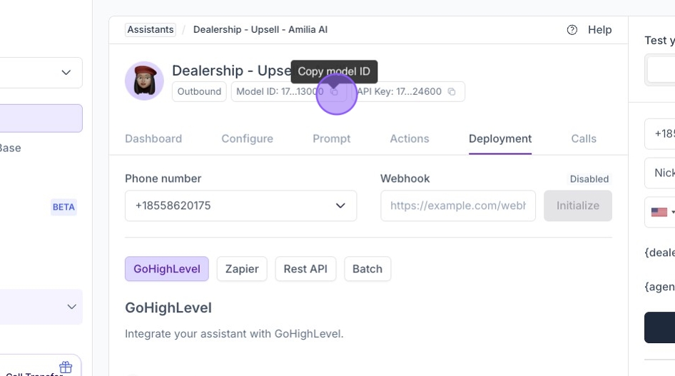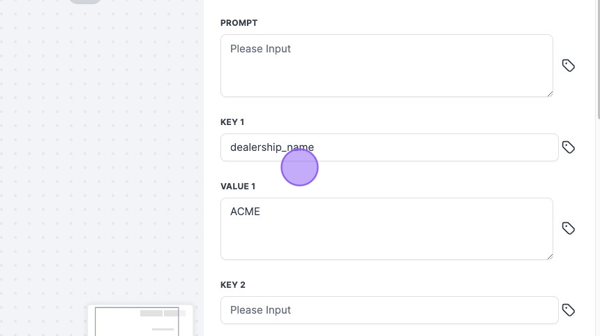 30. For Custom Variables, you need to first create one in Synthflow e.g. {dealership_name} and paste the key without the brackets here in GHL