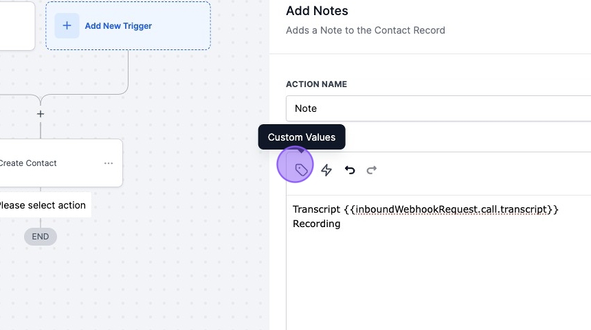 31. The Value should be selected from the GoHighLevel tag and referenced here