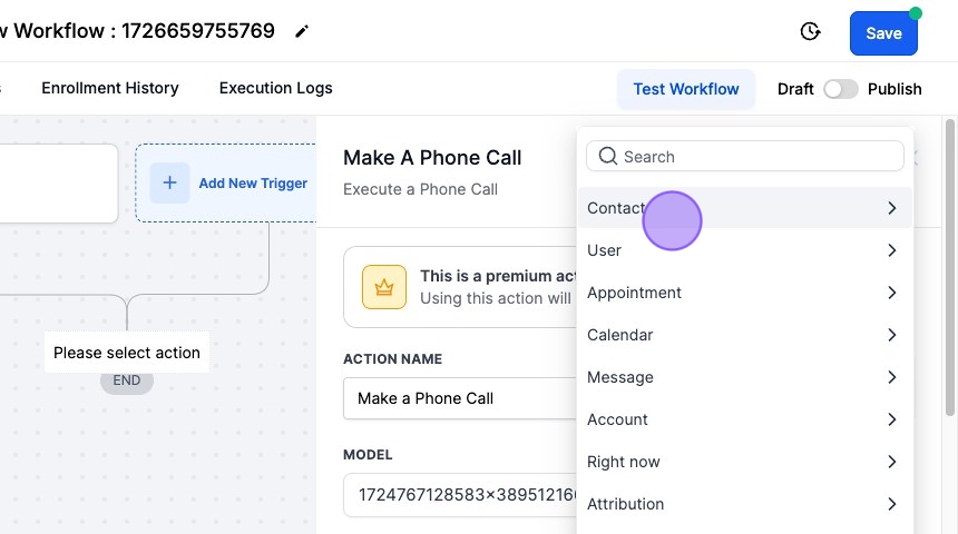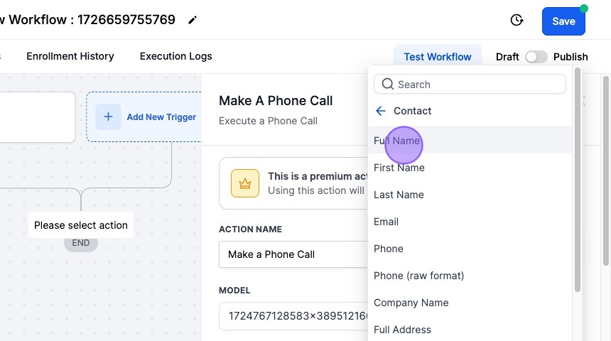 36. Now to capture the incoming Call Data, click “Create Workflow” again